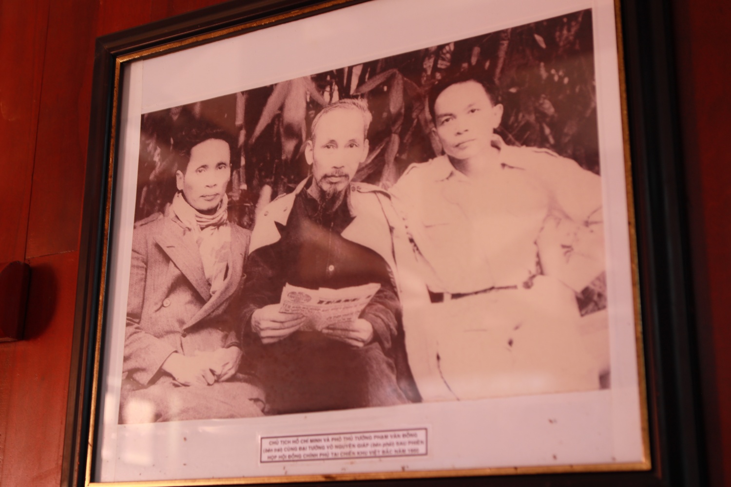Chủ tịch Hồ Chí Minh cùng Phó Thủ tướng Phạm Văn Đồng và Đại tướng Võ Nguyên Giáp tại chiến khu Việt Bắc. Ảnh: Khu lưu niệm Thủ tướng Phạm Văn Đồng.