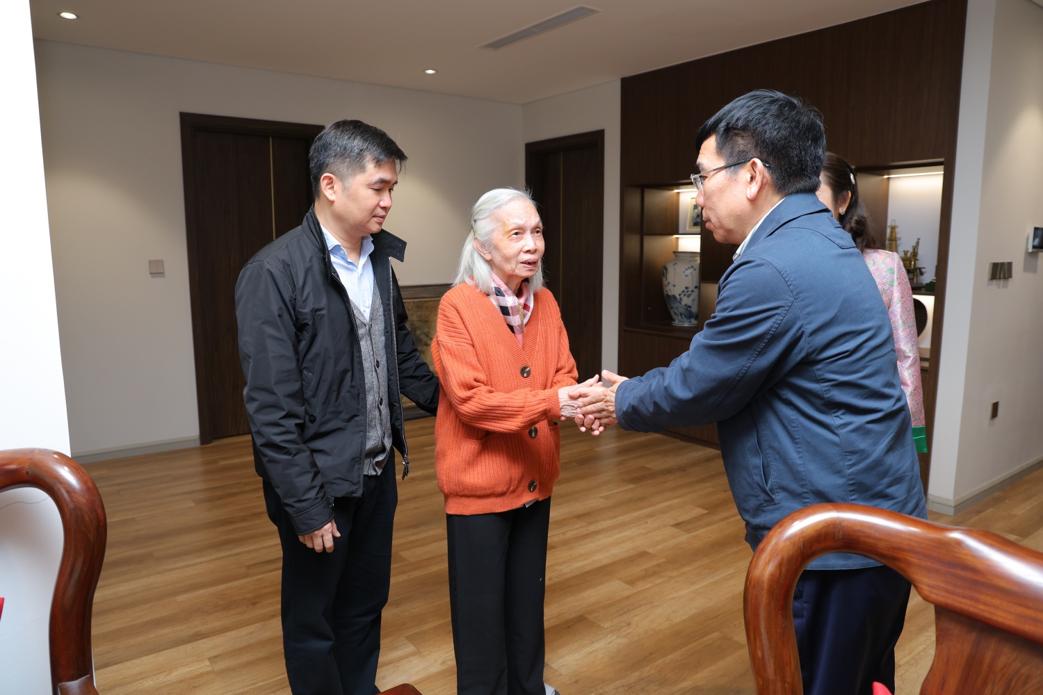 Đồng chí Lê Ngọc Sơn - Bí thư Đảng ủy, Chủ tịch HĐTV Petrovietnam thăm hỏi, tri ân đồng chí Ngô Thường San - nguyên Tổng Giám đốc Tổng công ty Dầu khí Việt Nam (nay là Petrovietnam).